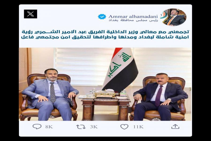 تجمعني مع معالي وزير الداخلية الفريق عبد الامير الشمري رؤية امنية شاملة لبغداد ومدنها واطرافها لتحقيق امن مجتمعي فاعل